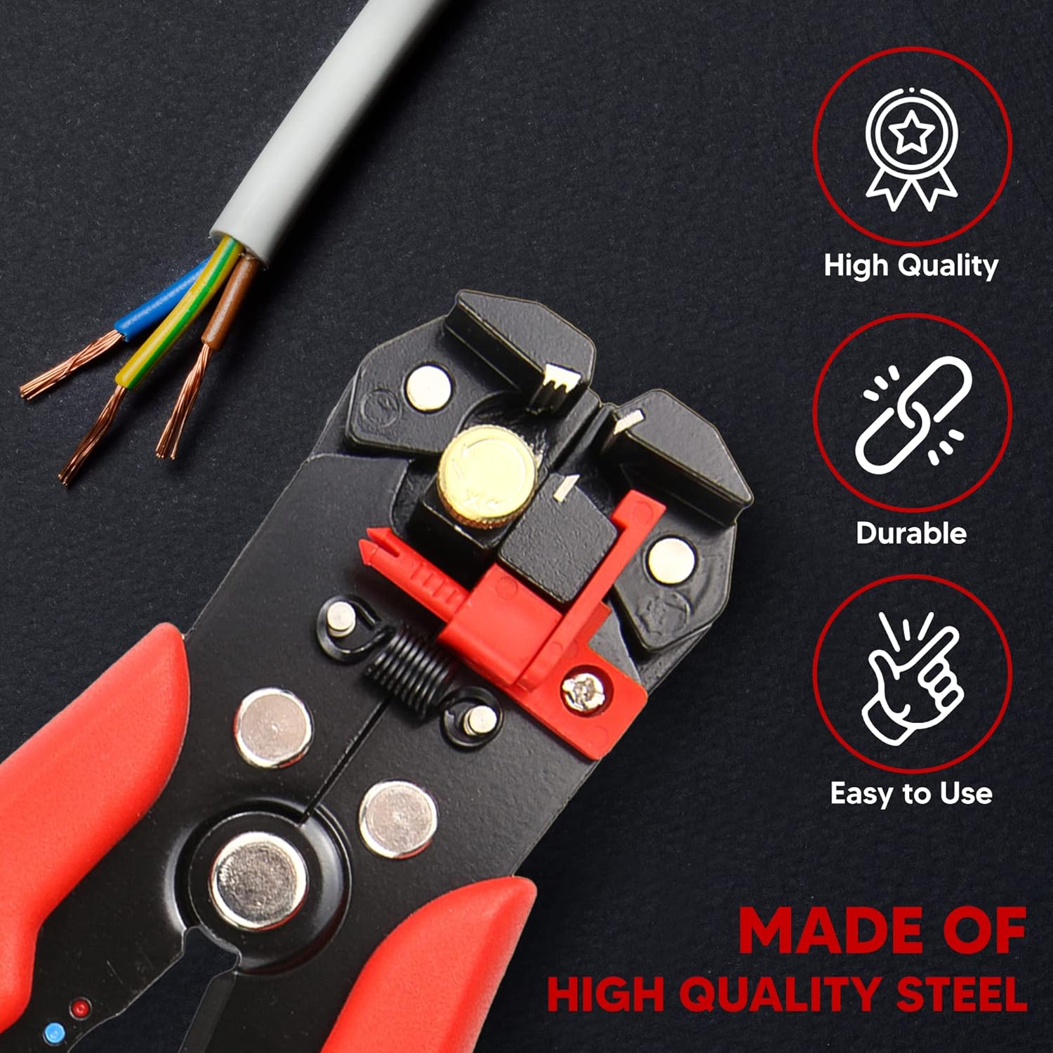 AUTOMATIC WIRE STRIPPING – Designed for quick and precise removal of insulation from various wire gauges, reducing hand fatigue and ensuring consistent results in repetitive tasks. Suitable for electricians, DIY users, and workshop applications.